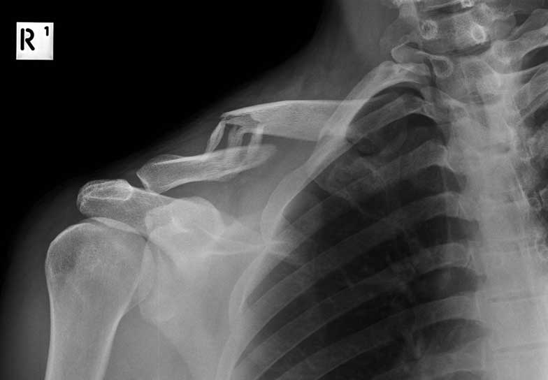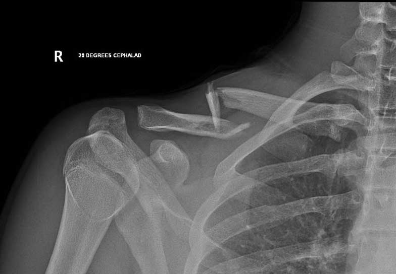 The clavicle often has 2 main fracture fragments and then 2 or 3 other pieces which make healing difficult. These fractures are best treated by realigning the clavicle through surgery in order to prevent further complications of shortening and overlap.