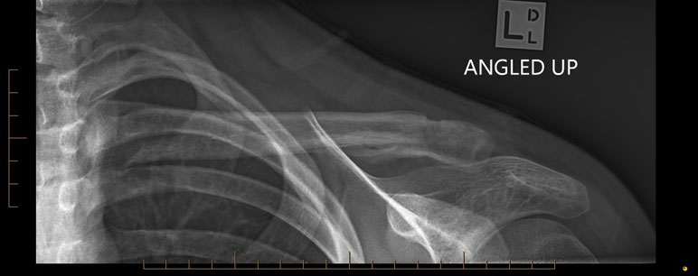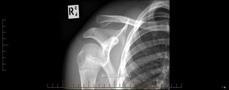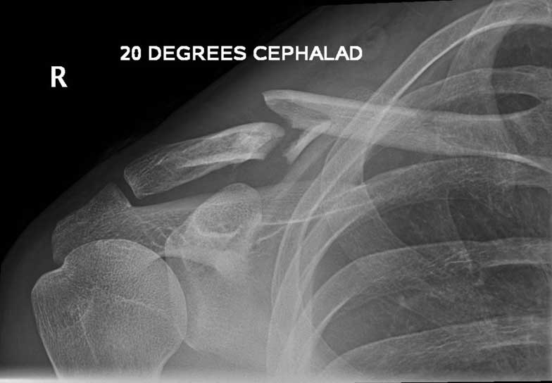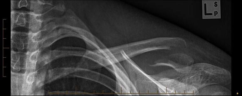 Diagnosis of a distal clavicle fracture is made with history, then a plain xray of the clavicle and in a lot of cases a CT scan. With new 3D CT scan imaging, separation of bony fragments can be well visualised which helps for possible surgical planning.