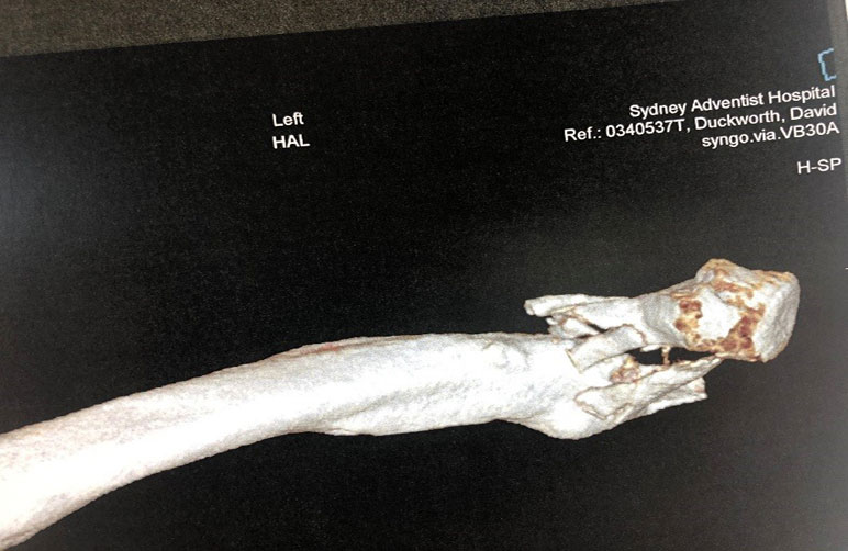 This 38 year old man came off his motorbike at high speed on the race track and presented with a comminuted fracture of his clavicle. His 3D CT scan highlighted the extent of the damage and I operated on him two days later. The plate used is much larger than I would normally use as is the scar, however this was necessary in order to secure all of the fracture fragments. He told me he felt better as soon as he woke up in the recovery room. When I saw him six and a half weeks following his surgery his fracture has already healed in perfect position, he had a full range of motion and volunteered to prove he was already able to do push ups (watch the following videos to see for yourself!)